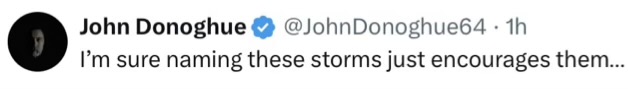 “Caught in a storm here, don’t know what the rest of the UK had, window blown out. Why did I not know about it until within it? No MSM here and X was in North American gear.”