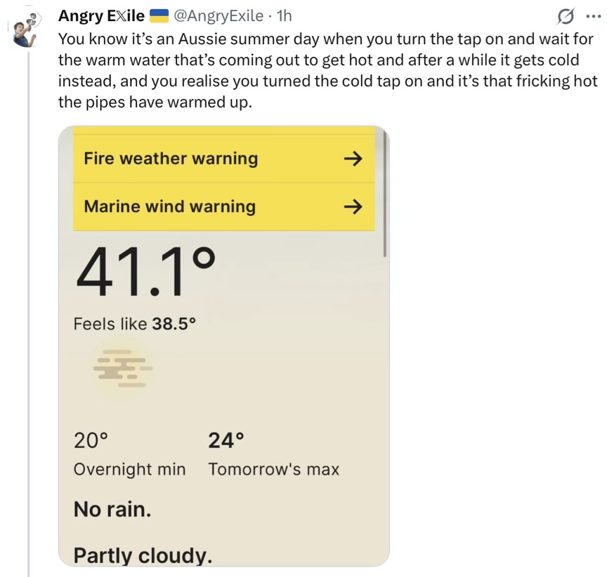 On X, a fellow styling himself Vic (Meldrew) also has a local tavern for real, gives the pub perspective, plus quite a few ladies drop in to excoriate Them but at the same time have some banter … last evening, a gal from Cronulla beach in Sydney and so it goes on.