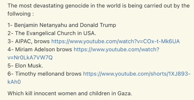 “I’d like to bring this to the attention of Vice President JD Vance. Yesterday, your friend Tucker Carlson said, “Anyone still talking about Gaza or Iran should be called out immediately as someone who just doesn’t care about Americans.”