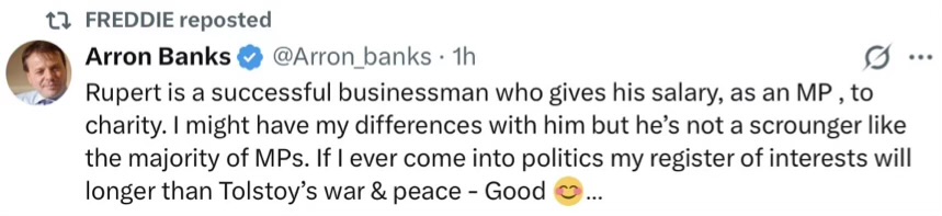 3. Interesting from Reform backer and Nige mate Arron