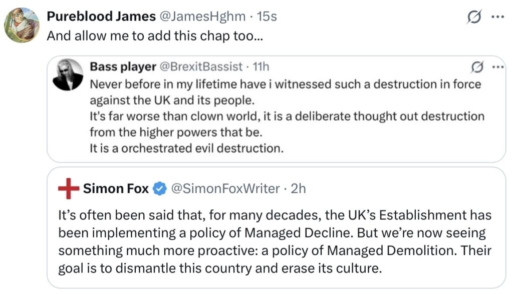 Looking obliquely now at X, were I our beloved leader, with or without the five alleged rent boys, which I’m not, I’d look closely at banning X in the UK, which I’m not doing. And if May her/him/itself allegedly said she etc. was woke and proud of it, I’d wish to first see some proof of that.