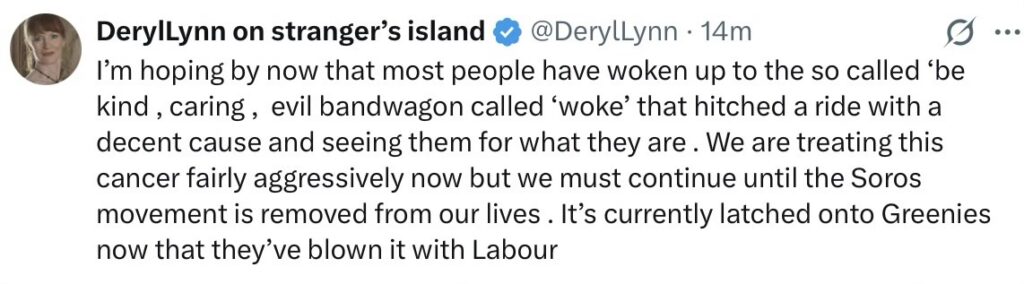 Then an incident occurred at the top of our road near here. There was a lycra lout up near the corner and I nodded on the way past … he went full verbal, then pulled out to come at me. Whaaaa? Man was insane, not unlike Woke women. I do see what Julia said now.