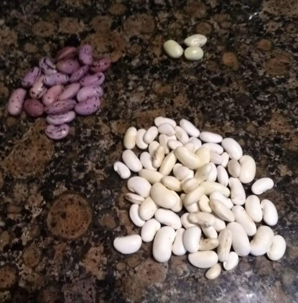We also had a few beans. To be honest, the amount is pitiful. We didn’t plant as many as we normally do, but even so our result was very small. Definitely not enough to see us through the winter!! It’s our own fault. We didn’t collect them in when we should. We did eat a lot of them when we had visitors earlier in the year, but then we got caught up in volunteering for a local charity shop and all our good intentions for the garden went out the window. Or something like that.