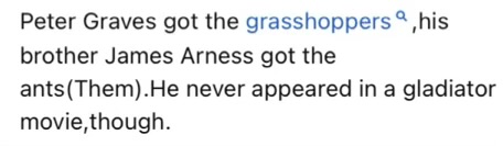 Peter Graves most memorable film part, by the way, has to be Capt Over in “Airplane”. I’ve never looked at “Gladiator” in the same light.