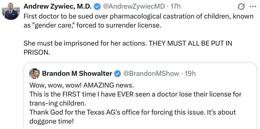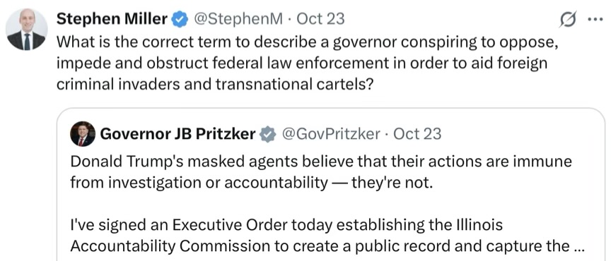 Speaks for itself, that one. This below is still an opposite but in action Pritzker somehow thinks is equal and opposite. He was seated at the big desk and, aping DJT, many people stood around behind the desk as he did the Big Signing of the EO, as if it counts for something. Bizarre.