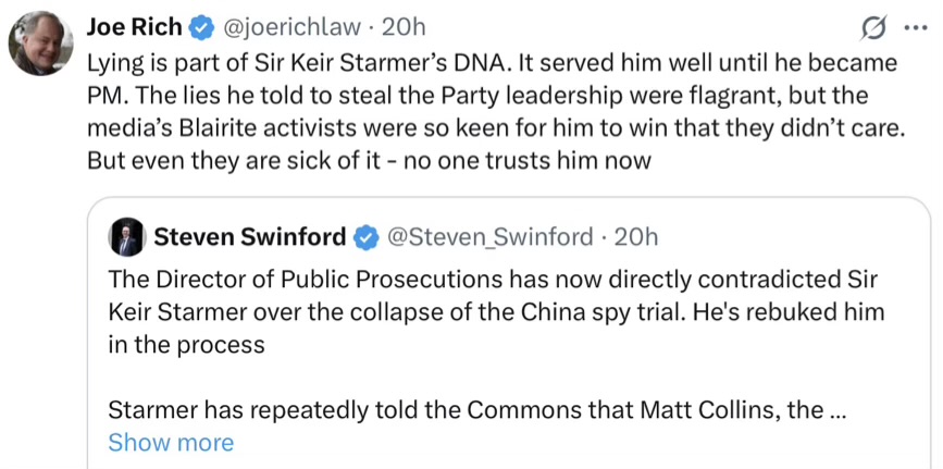 Below are sshots I gathered earlier and what connects them is the concept of “opposite” in that they don’t just misrepresent, don’t just lie by omission, don’t just flat out lie but they actively say or do the diametric, direct opposite. That’s real Goebbels stuff.
