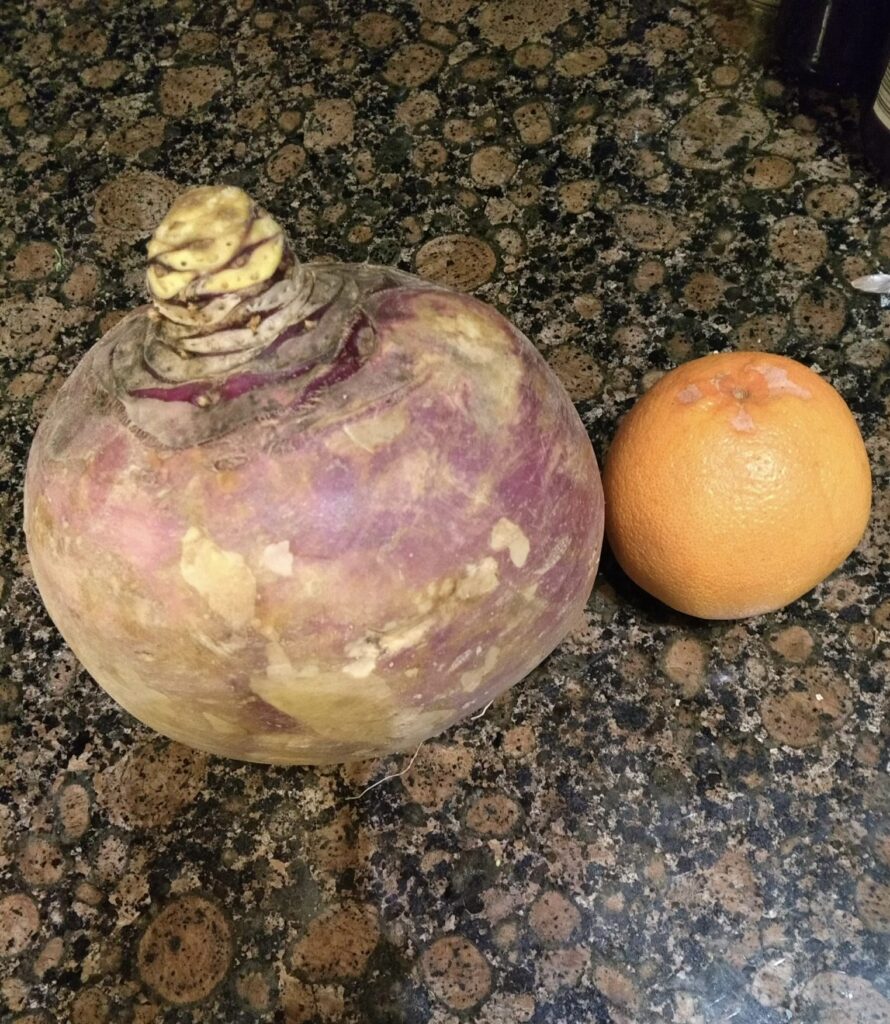 On Wednesday I went to the pop up pantry and got a very large swede! I took a photo of it next to a grapefruit so you can get the scale of it. It’s almost the size of my head. I’m not sure how on earth I’m going to cut it up to cook it. Perhaps my Beloved will have to take the chainsaw to it…