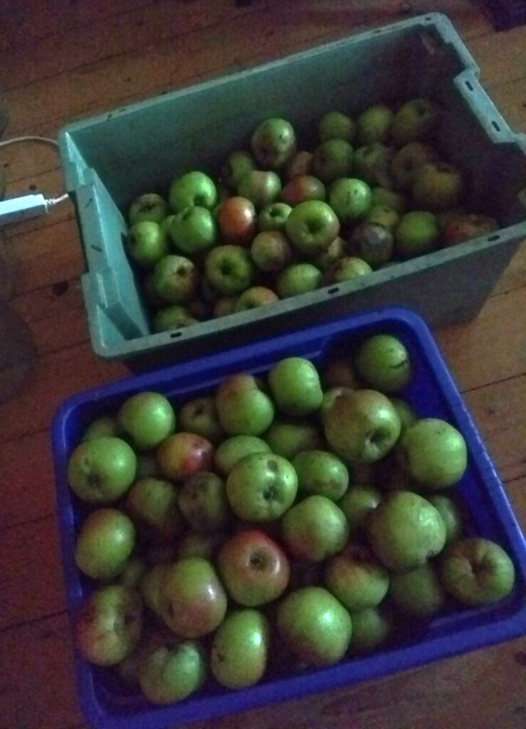 Actually, that’s not true, they picked all the eating apples and about a quarter of the Bramleys. Two crates of Bramleys and one of eating apples (pippins). The ladies said they thoroughly enjoyed their afternoon of apple picking, and they kindly cleared up the garden a bit in the process! There are still Bramleys left on the tree. Probably another two or three crates worth – I kid you not.