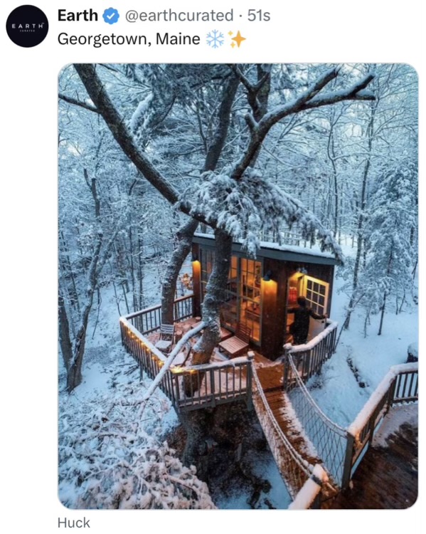 … the gallant ragtag find themselves on an island as exiles, they build, in the trees, a series of interconnected treehuts with walkways. Compare to that Oz house earlier today.