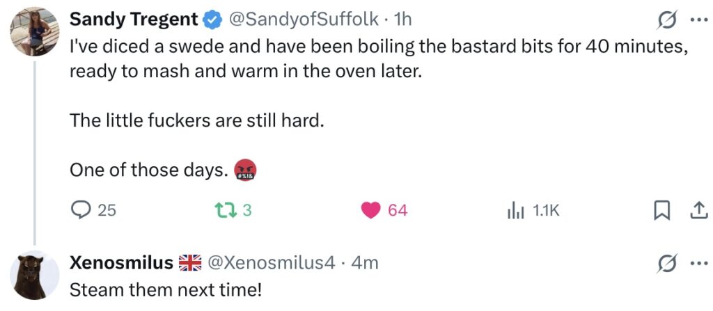 I suggested Sandy swear at them … she’ll have them eating out of her hand: