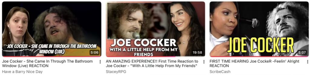 I really wanted to also do Joe Cocker reactions, as firstly, the performances were so passionate and lush, the young reactors in awe of how you actually needed talent back then … plus Steve B has a chart quiz in which one of the three numbers features: