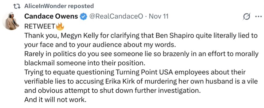 This one’s not dying away. Why would Shapiro speak of EK murdering CK? My first thought is that, by definition, it separates her from the Z***ist lobby and A*P*C. Therefore Christian. My stance is that I don’t know and could not know. However, I can surmise about double and triple crosses. By accusing EK on MK casts her into Team CK which, if she is Z***ist lobby, is an effective way of fooling people on a national show.