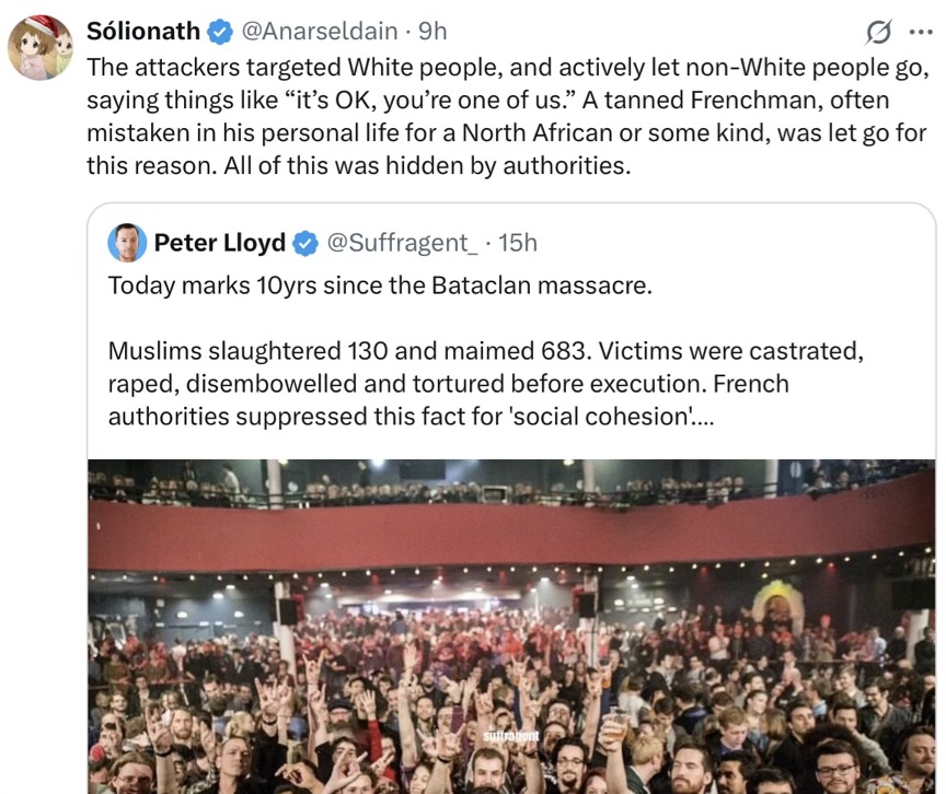 And a perfect example is that, in the light of a recent post in which I ask just how aware people are that they’re about to be slaughtered … along came the 10th anniversary of Bataclan, yesterday.