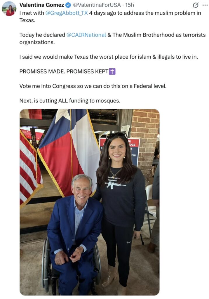 I do understand you might point out that Abbott had already had the hard word put on him from Mar a Lago, a little matter of the way the wind was blowing for Texas … but it still did not hurt that Valentina was the one right up next to Abbott, who’d like a lady as much as any of us boys … Donny uses them as soft bludgeoners so to speak … all for it … use the weaponry you have.