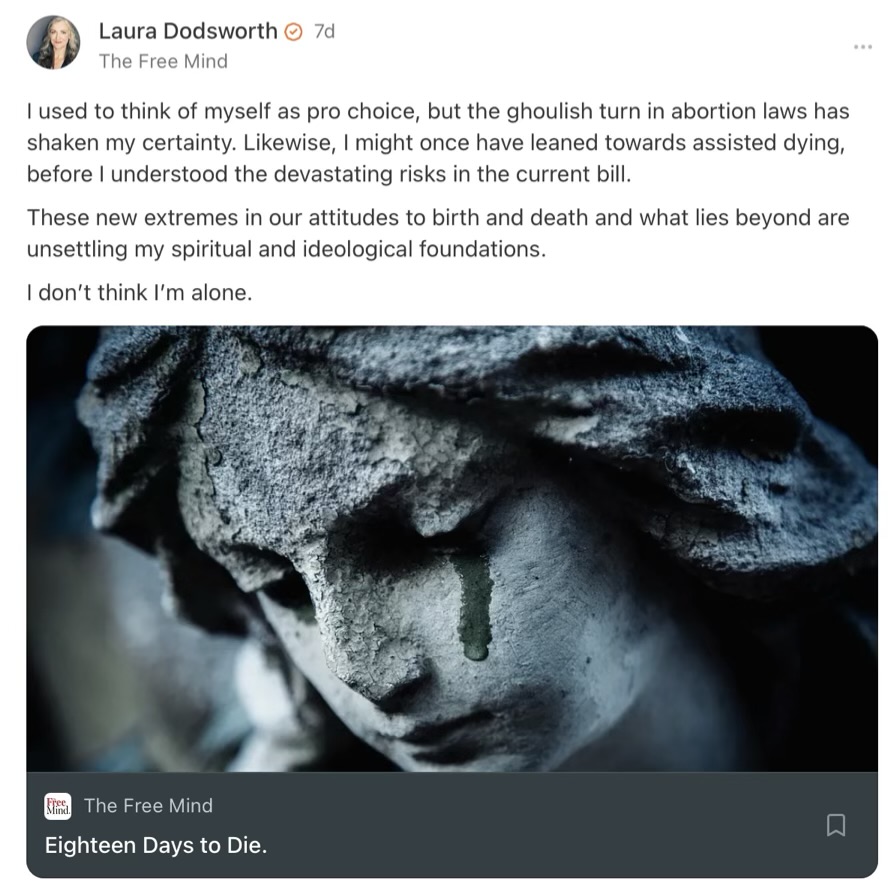 Then Laura, who’s on the cusp. She can either stop there and remain as a substacker trying to make a name for herself, even the price of cups of coffee … but otherwise closed …