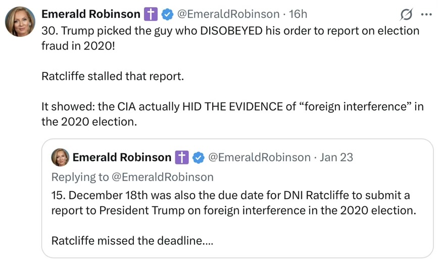 She’s not liked by authorities, by either party, possibly by the Don himself, certainly not by staff. I was suspended for running her material. If she runs it as a block, the leftists in control of X take it down. So she’s presenting this series in parts. Here are two of the parts.