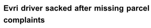 Interesting how different towns and cities have different bad delivery firms. I’ve heard DPD are bad in some places … around this area, Evri’s probably the worst, so much so that the lady from head office was making the deliveries. Their recruiting policy is obviously the pits.