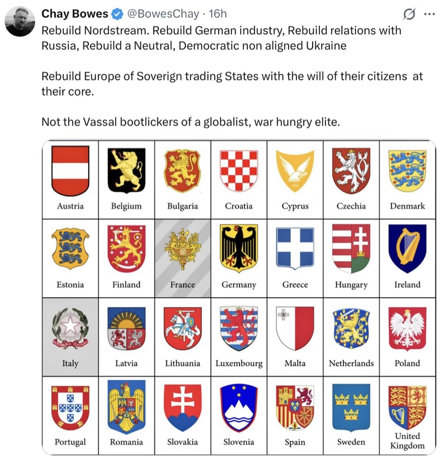 Quite like the idea of the West or in some of our minds … Christendom … being bookended, east to west, by Vlad and Donny, with Viktor somewhere in the middle. The other riff-raff usurpers need expunging.