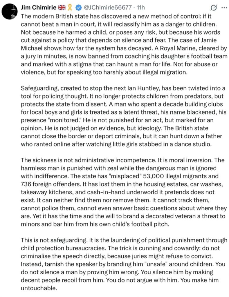 7. The system, in Starmer’s ‘ free speech’ Britain, is the punishment. The numpties in government still think that “1984” is a training manual.