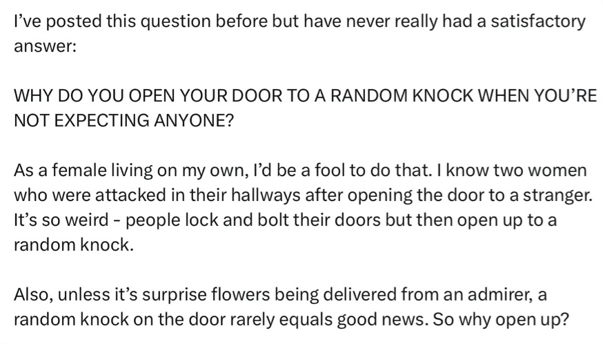 No. 16. What happened to the chain lock that only allowed the door to be opened a few inches? One had to close the door to unlatch it.