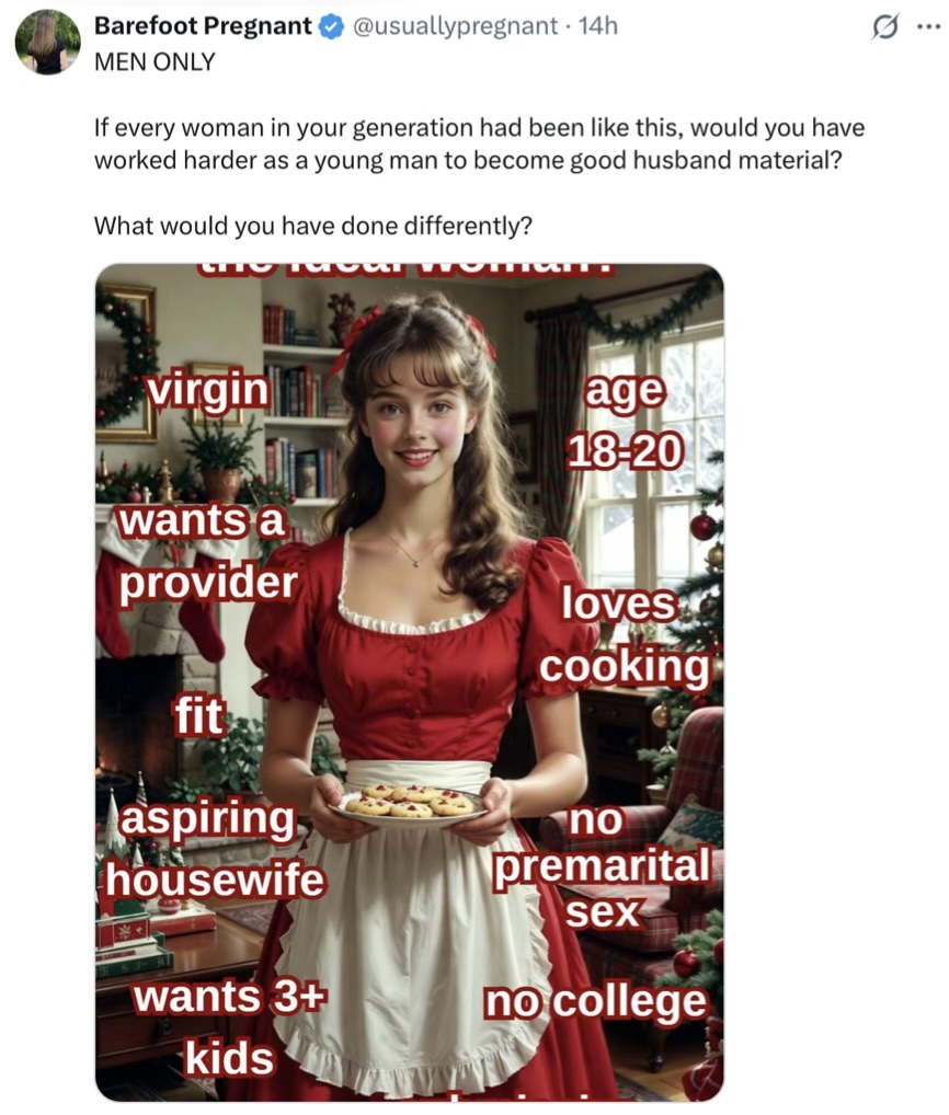 To say that males have simply “checked out” is the understatement of the late 20s but at the same time, antifeminazi women are surging, esp. online, such as this young lady below.