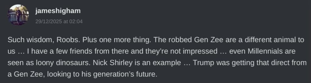(0217) Greetings on this “inbetween” Monday or just after the last weekend for the year, as Xer Irina called it. This might be one of the most vital posts yet at this site, due to the heterogenerational and heterogender nature of its sources. More below. (0254)