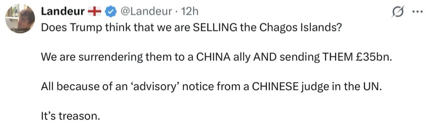 Sky News UK positions itself as the working man’s conservative voice, in a Boris Johnson way before he went full WEF. With that Chagos report, they ran with the Chagos people being “removed”, a fair angle, but playing down what Starmer is doing … the very thing the country’s pundits are on about.