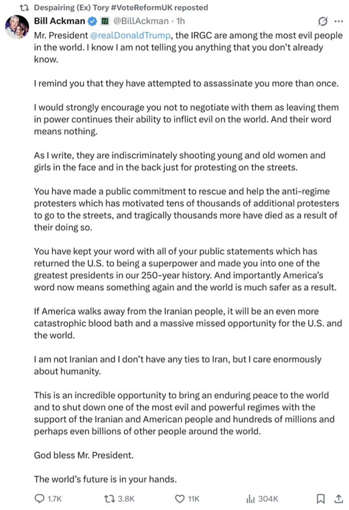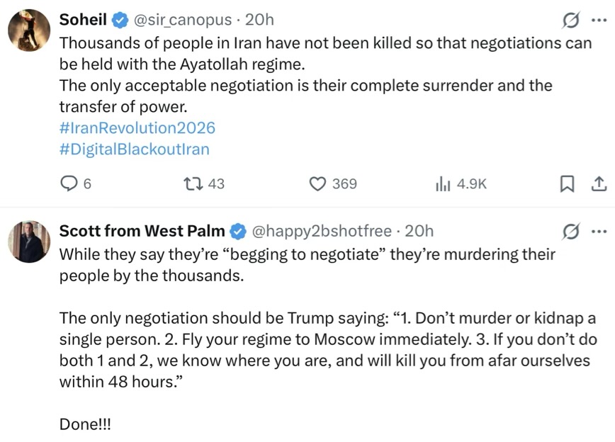 Monday 14. The issue is not whether Trump ever intended to rescue the Iranis – maybe he doesn’t have to..