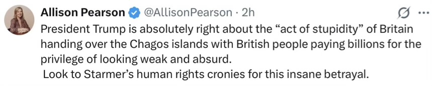 14. Chagossians arise – as is The Donald, saying it is a “great stupidity” the UK is committing. In addition to that incompetence is the decision to allow the CCP to build the largest foreign embassy in Europe, right in the heart of London – the footprint will be larger than Buckingham Palace. Ain’t life grand under a this socialist, self-hating regime called Labour? Meanwhile, in other news..