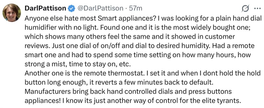 I commented: “It’s why I use a dumbphone, Darl … does not think for itself.”