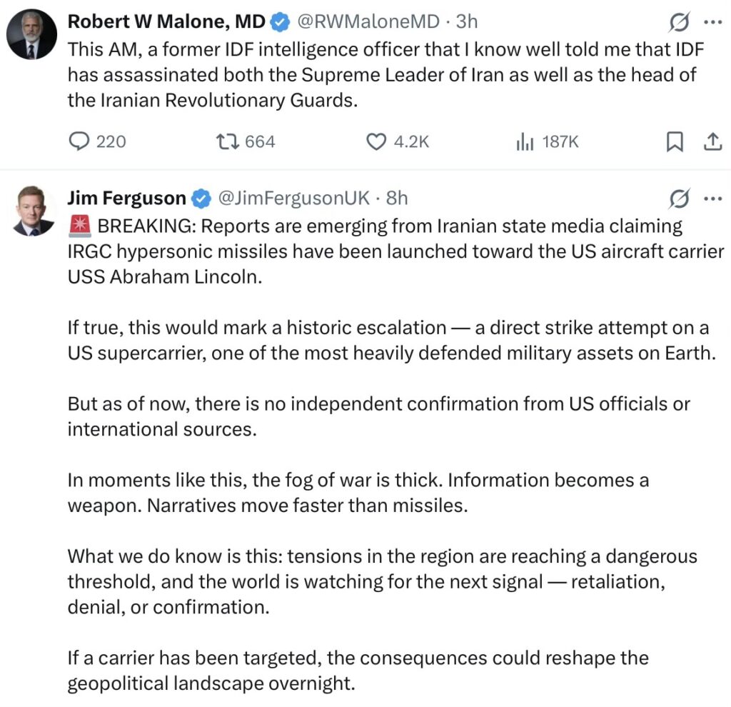 2. 12. Two reports – to the first the Israelis have said he is dead, they have footage of the body as it was dug out of the rubble. They hit his office in Tehran early this morning during a high-level meeting. It was also the very first strike in Operation Epic Fury. Result 🙂
