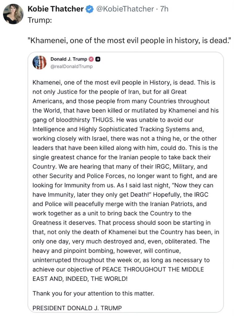 • Iran’s Supreme Leader Ayatollah Ali Khamenei is Confirmed Dead – Israeli Officials Say His Body Has Been Found