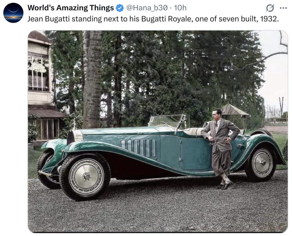 12. Too big for Derbyshire lanes, I’d like a smaller one. Unless Jean Bugatti was a particularly small chap of course. Reply