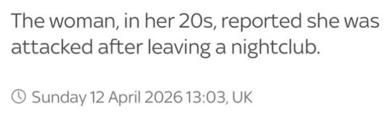 Why on earth was she at a nightclub alone anyway? Ok, let’s leave that … why was she leaving a nightclub alone in Britain, given the flooding of Britain by pack-rape demographics, with horror cases every other day, including deaths?
