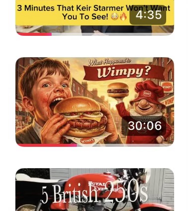 Youtube did a strange thing. If you look at the Wimpy post (thanks for the comments, chaps), you see a picture before you start it. All right but in my history queue, the picture is different: