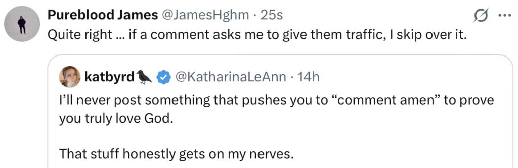 Then there are the empire builders, using current world situations for their own “shows”, e.g. The Johnny Roberts Show … and where most Xers have a “following you” and “follow back” pair of buttons, these people use “following you” and “subscribe”, buy me a coffee … they lock you into paying them money, giving out card details. You can never just follow them back.