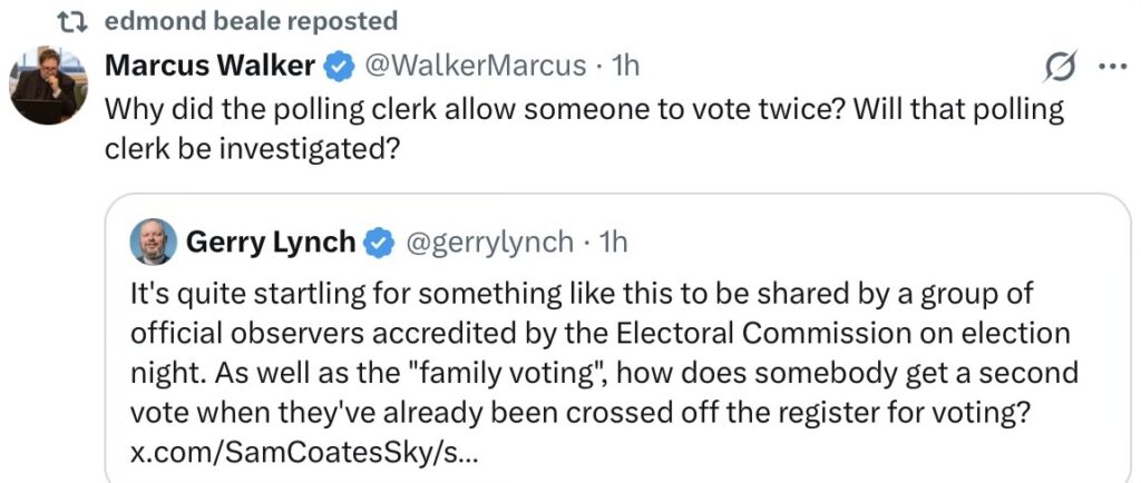 “The Electoral Commission give Democracy Volunteers access to polling stations at election time. Only they and the police can go inside. They’ve just issued this report about “family voting” in Gorton and Denton: