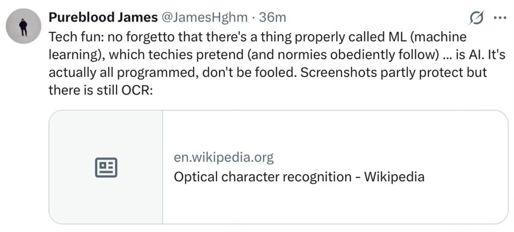 Now, what’s interesting to me about the stats I had on the post? Last week was 7.8K “impressions” on the account. Uh huh. After 36 minutes today, that post just now had received 0 looks, 0 likes, 0 retweets. Equally irrelevant posts generally get up to 20 looks, relevant ones, e.g. Mothers Day … that got 145 views. Even then, it bears no relation to actual stats. In short, it’s almost certainly rendered partially invisible … in fact, X said it in a note. Having been naughty in the past, e.g. like Julia, has seen us both handicapped.