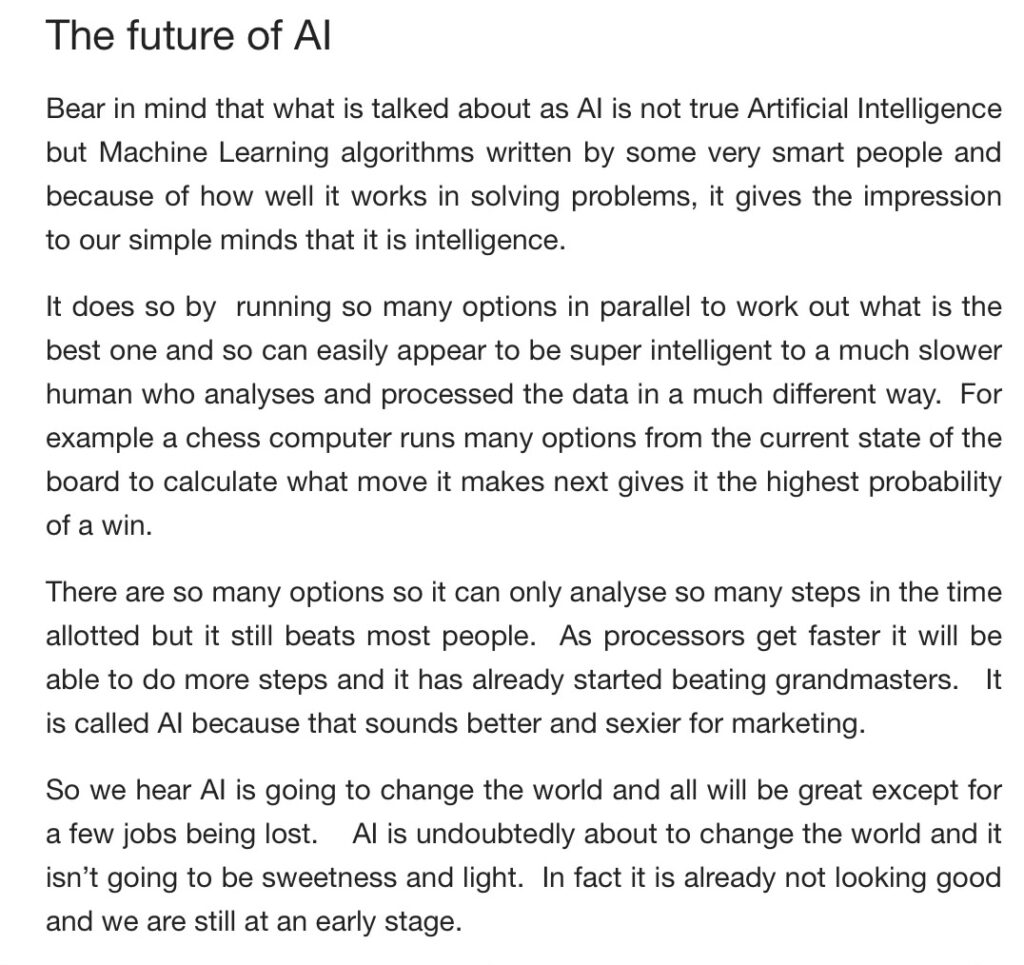 Lord T, whose field is IT (slightly longer profile below the article over at OoL plus Jstack, text copy backed up), has sent a piece on where “AI” is headed … he should know as he has to negotiate these things in a professional capacity. This is just the opening below: