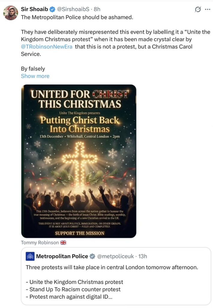 There’s a prayer meet around 1400 near N10 and Whitehall, organised by TR but led by a pastor whose name escapes me … I pray it goes well. Ditto with No to Digital ID at 1300 in another part of town … I’ll try to find the venue.