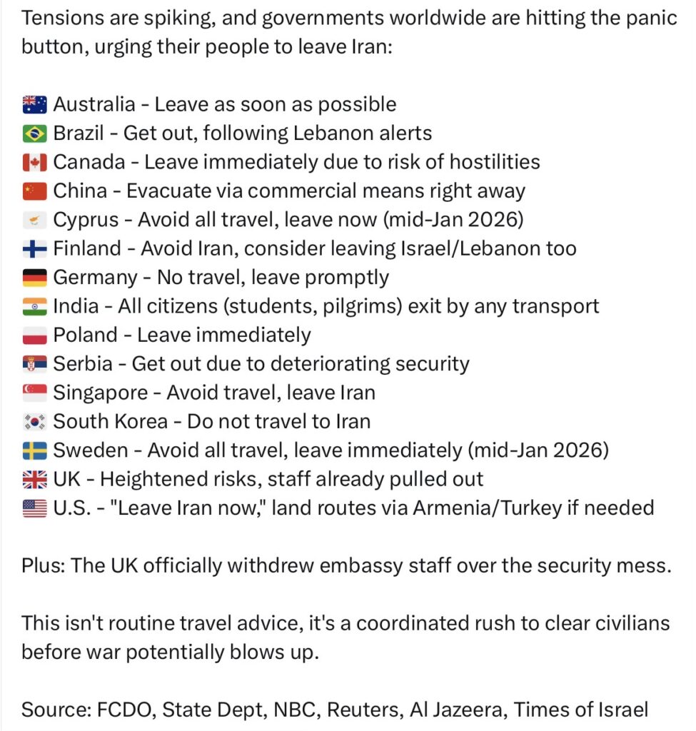 The US State Department ordered evacuation of non-essential employees and families from the embassy in Baghdad. Separately, the US Embassy in Jerusalem approved evacuation of non-essential staff from Israel. Two American embassies, two countries, same order, same day.