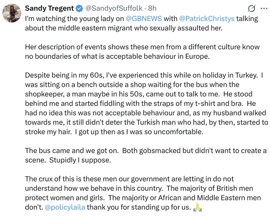Thing with Sandy is … she knows things are bad but still trusts “Nige”, ignoring his track record, she’s a high up in Reform. With Jen, you can see where she is. Why am I expending so much time on this?