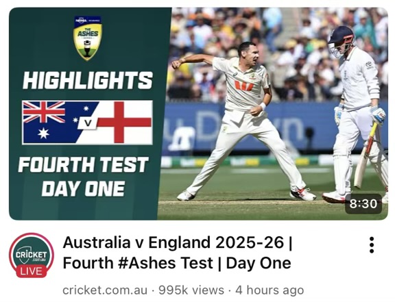 Oh my goodness … Boxing Day Test at the Gee! I would have been there for sure, living a half mile away in Richmond. Then I took a second look … what’s this 2026 thing? Shirley it goes Boxing, Sat, Sun, rest day Monday, then Tue, Wed. Yikes … I’ve completely forgotten, must look it up.