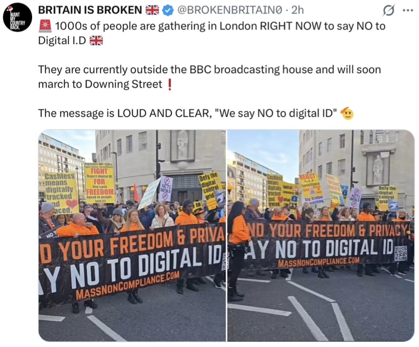 There’s a prayer meet around 1400 near N10 and Whitehall, organised by TR but led by a pastor whose name escapes me … I pray it goes well. Ditto with No to Digital ID at 1300 in another part of town … I’ll try to find the venue.