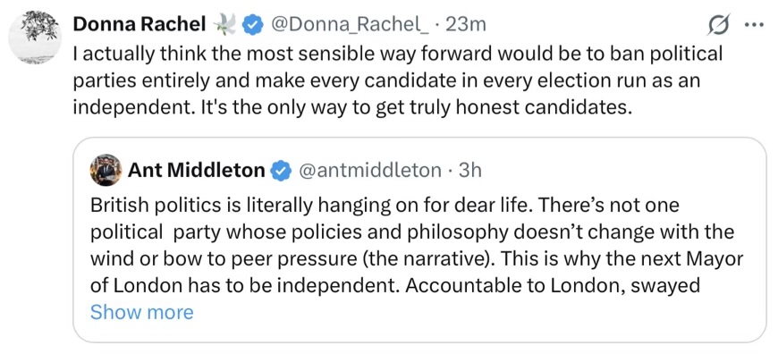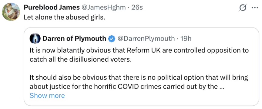 I’ll post a sshot summary of X this morning at Mon 6 … it includes the debanking in the UK, which has sharply risen, along with yesterday’s stats on plod raids. There’s also Mon 1’s issue of the blocking by Aus govt, which they’re hoping to roll out here soon, if Starmer can survive … it’s line ball, as in Iran … or is it? Is it all part of the theatre? Or is that last sentence part of the theatre too?