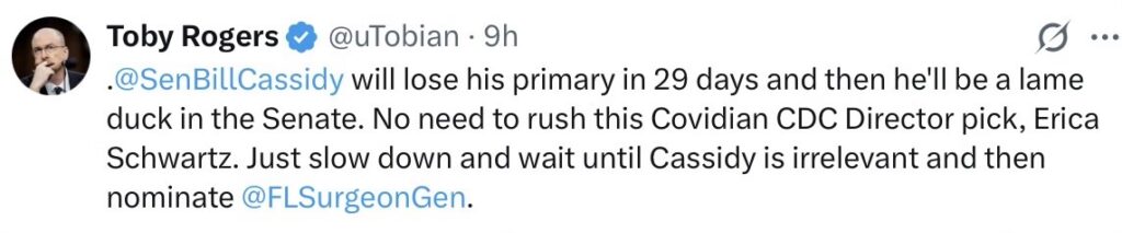 Trump’s pick to head the CDC, Erica Schwartz, would likely be a disaster (says Aaron Siri on X).