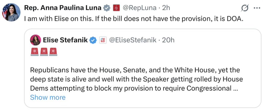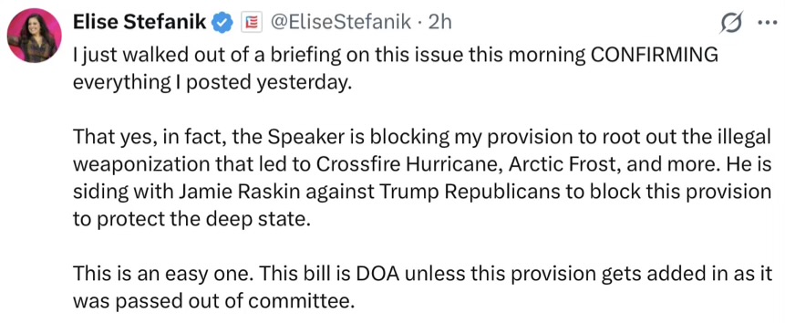All the same, Elise’s victory over Johnson last night was nice … so maybe it will stir the Donald enough to put a bomb under the GOP.